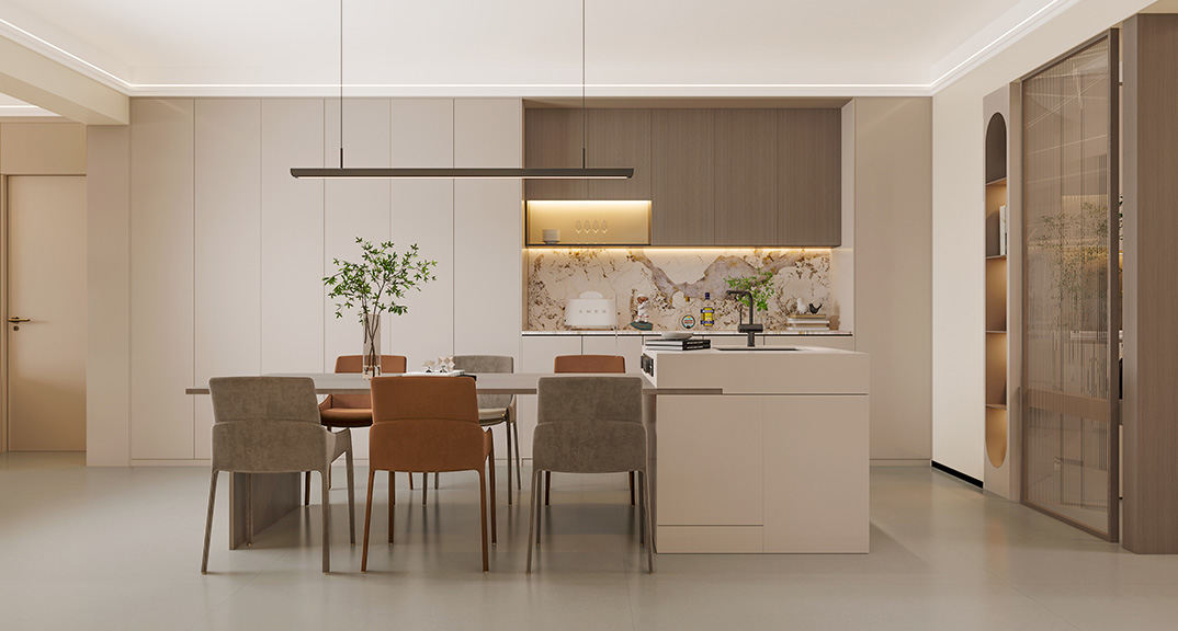 以简洁、清晰和功能性为特征的室内设计;它主要强调了空间的简化和精炼,追求线条简单、空间通透、色彩明亮、材质自然等特点,注重形式与功能的结合。他们希望有一个时尚、现代的功能性空间,在整个空间的设计上用了暖灰调来与简约的线条感来相呼应,能改造出一个通透、流畅的空间感。